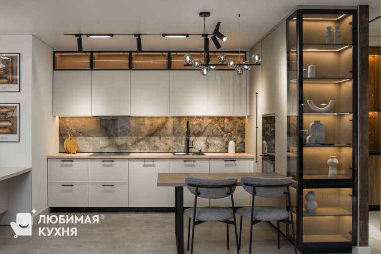 Кухня для приверженцев неоклассики. Благородный оттенок классических фасадов с темной столешницей для настоящих эстетов. Красота и изящество,успокаивающая гамма и одновременно торжественность данной модели сделает кухню центром вашего дома!