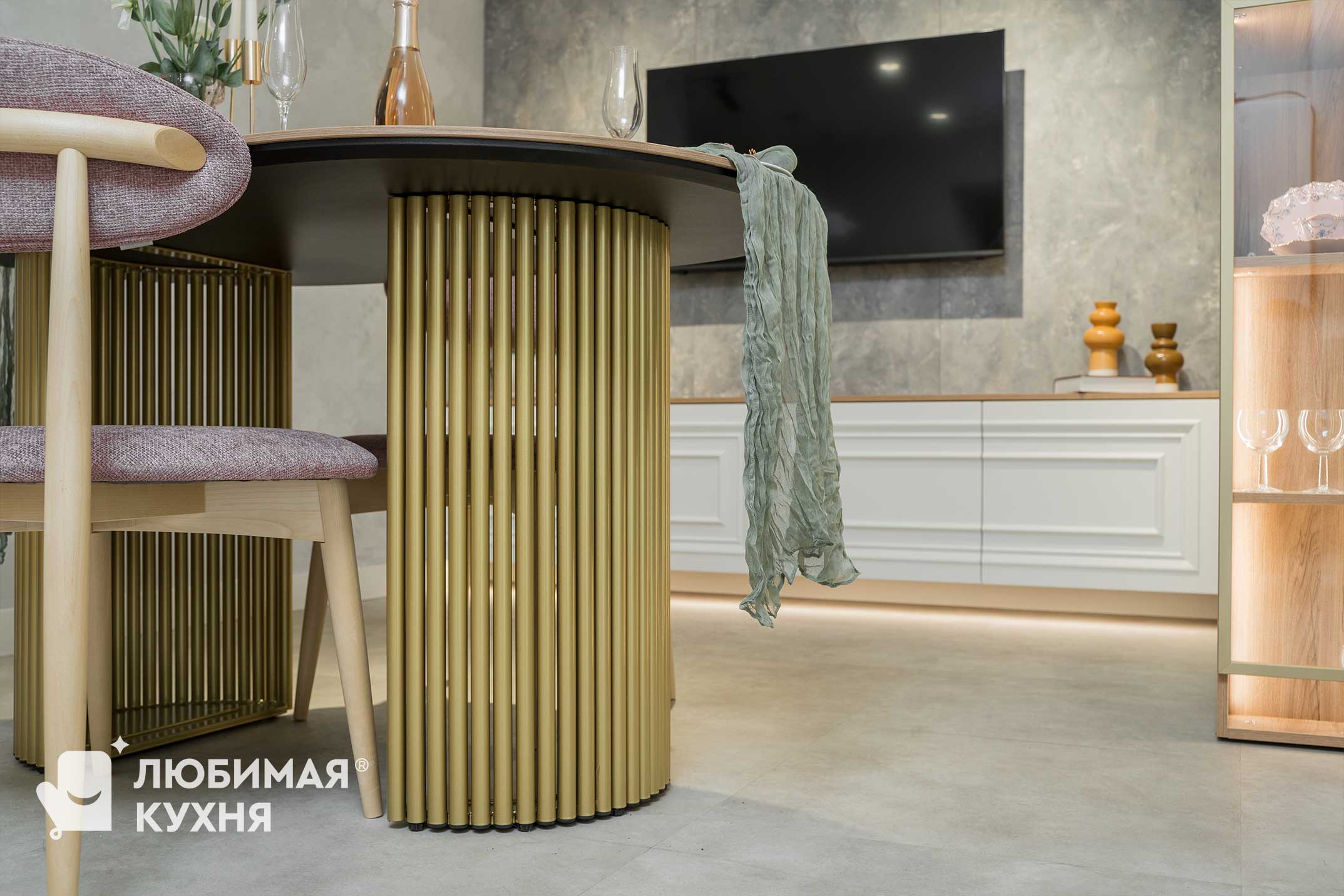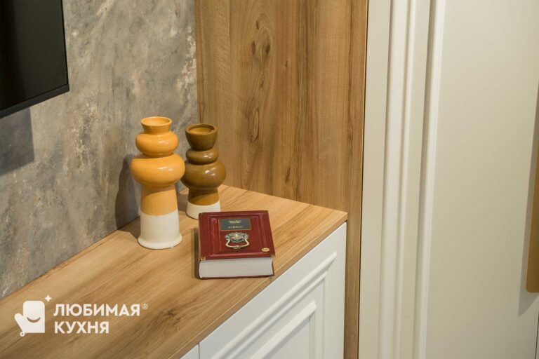 Мебель в гостиную в стиле неоклассика. Тумба с выдвижными ящиками и вместительные пеналы, торец которых декорирован полками с подсветкой. Изящное решение для вашей гостиной!